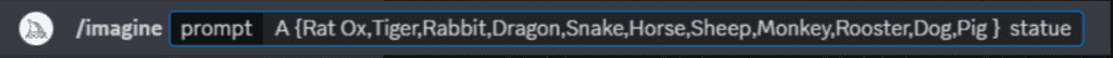 系列化出图:如果要出系列化的图,比如十二生肖系列,先输入一个大括号{},然后在大括号里面把要变动的词列上去。