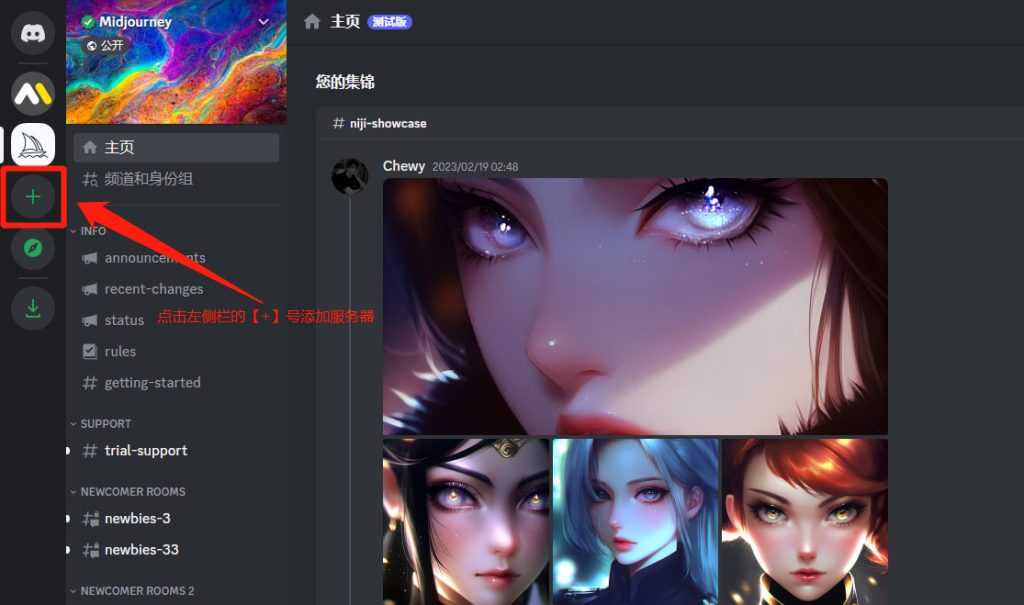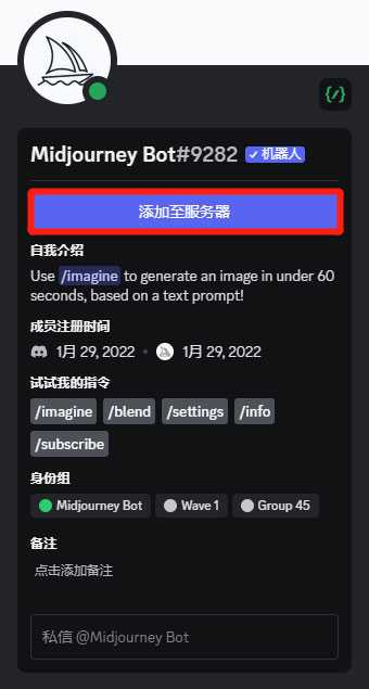 -a. Join the beta:点击将Midjourney添加到Discord社区平台