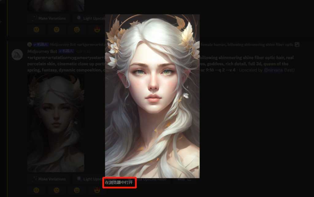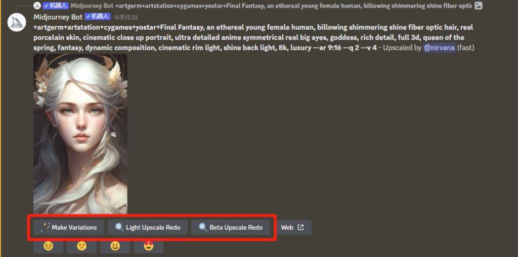 -c. Light Upscale Redo:再次升级,测试不向图像推荐太多的细节重做和放大图像。如果你希望此功能为默认,可以在描述语末尾输入指令–uplight