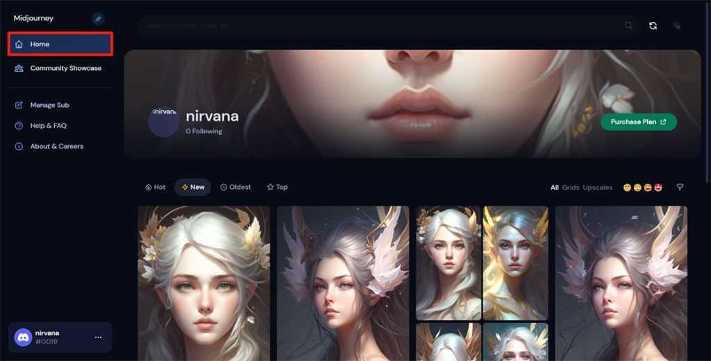 -b. Sign In:登录和进入自己的Midjourney主页 (在这里你可以看到你自己生成的作品)