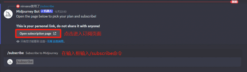 1. 在输入框输入/subscribe命令回车,点击[open subscription page]打开订阅页面