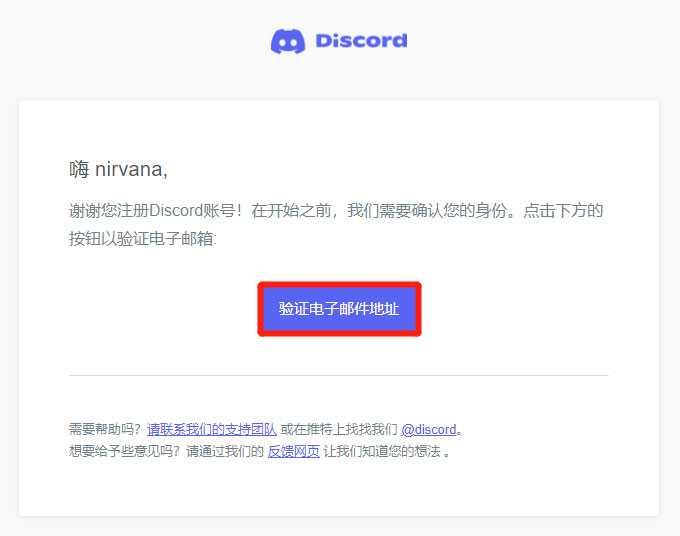 6. 进入你的邮箱,你会收到一份来自Discord的[验证邮件]