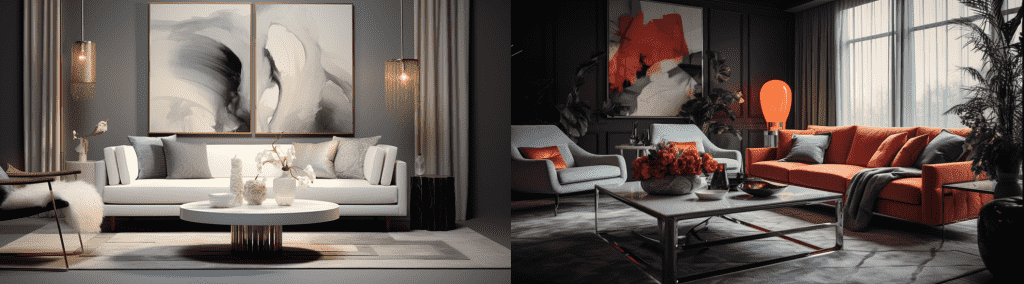 色彩在创造一个舒适和温馨的家中扮演着重要的角色,用一些简单的颜色组合,可以用颜色来创造一个适合你个人风格的空间,也可以包括椅子、沙发等材料的颜色设计。所以在提示中可以混合【室内设计】【色彩倾向】。