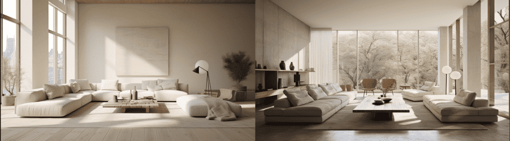 a modern and minimalist living space with an emphasis on natural light and a neutral color palette, inspired by the works of Axel Vervoordt –v 5.2 –ar 16:9