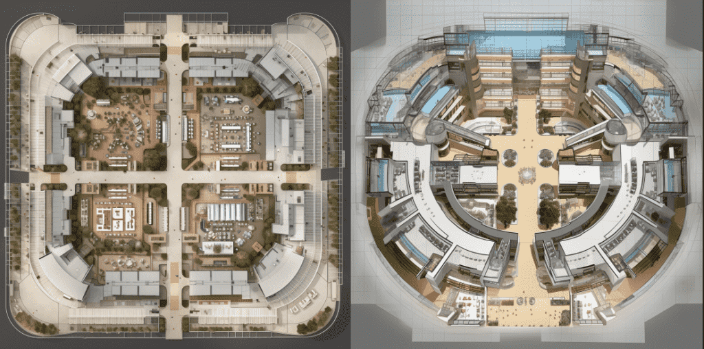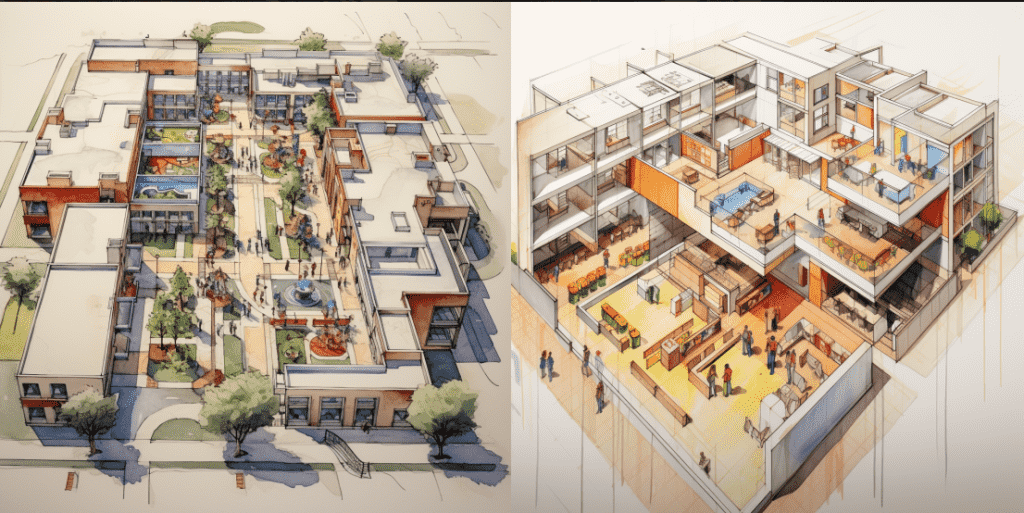 Architectural plane perspective renderings, middle school architectural plan –ar 1:1 –v 5.2