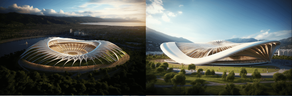 The stadium will host the FIFA World Cup in Costa Rica in the year 2034. The inspiration for the building is the costarica expression “Pura vida“. By Santiago Calatrava –ar 3:2 –v 5.2