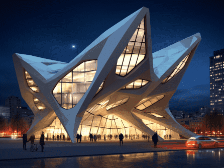 在筑设计领域有许多知名的设计师,如被誉为“建筑界的女王”的扎哈:哈迪德 Zaha Hadid。她的设计作品充满了流线型的动感和独特的几何美感,在 MJ中几乎是被引用最多的计师之一。