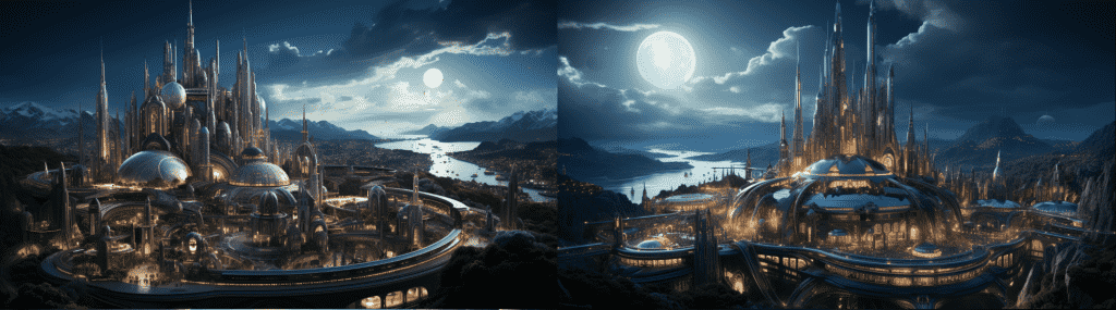 超现实概念建筑作品实用性较低,但可以启发人们的想象力,并为人们提供一种独特的视曾和感官体验,激发人们对于美学和审美价值的探索和思考。生成这样的建筑设计作品图像时。通常使用未来主义 Futurist、科幻 sci-fi、25 世纪 25th century、科技朋克 Cyberpunk、外星人建筑 Alicn Architccture、机械未来 Mechanical Future、科技幻想 Technological Fantasy 等关键词,还可以利用以图生图的方式,使用来自游戏或插画的超现实建筑插图来生成,