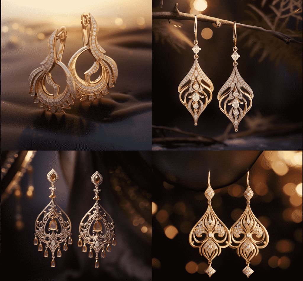 Earring jewelry design, Arabian style,shot by canon eoR5, Delicate, elegant, detailed intricate,photorealistic,product view,–s 150 –v 5.2