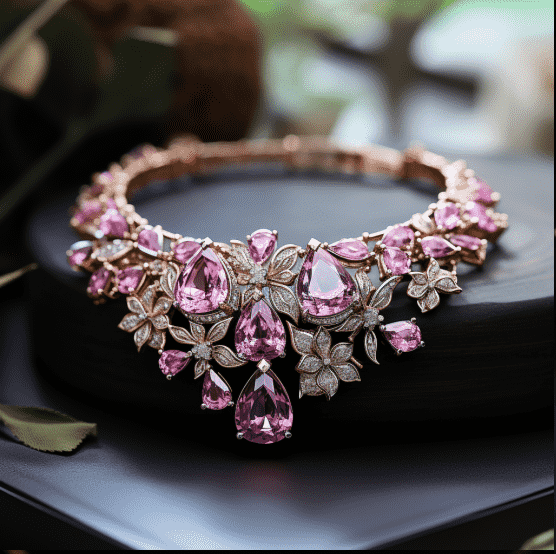in style of Wolfers Freres, jewelry design,necklace design, gemstones and diamonds, luxury, shot by canon eos R5, Delicate, elegant, detailed intricate, photorealistic product view –s 850 –v 5.2