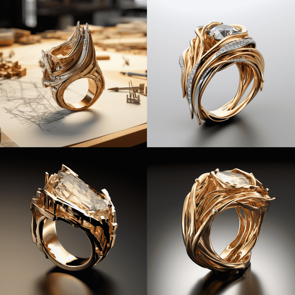 ring jewelry designs based on Frank Gehry sketches 4k –s 150 –v 5.2