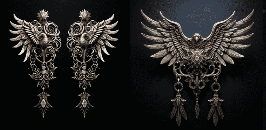 jewelry design,earring design, earrings, classical, rococ period, silver,details, summer, eagle, wings, Lattice –s 250 –v 5.2