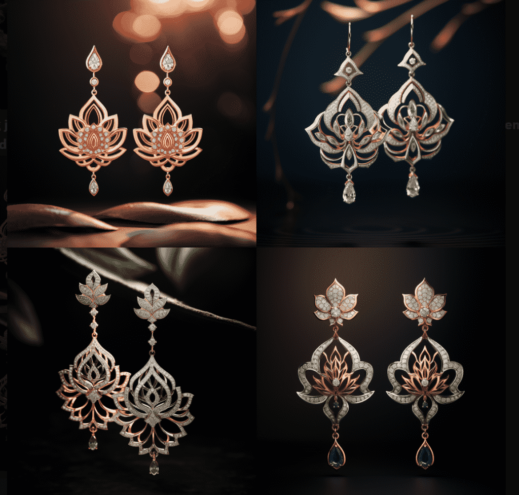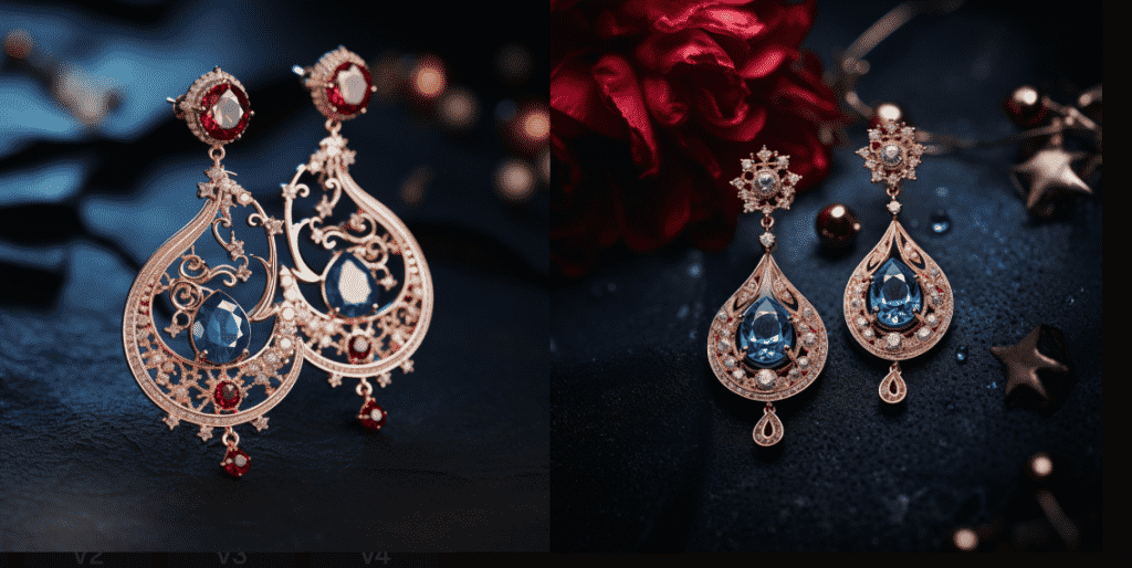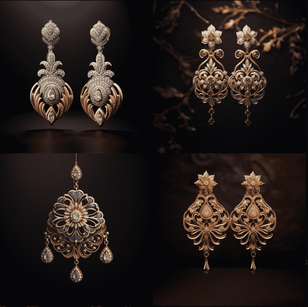 Earring jewelry design, Indian style,shot by canon eoR5, Delicate, elegant, detailed intricate,photorealistic,product view,–s 150 –v 5.2