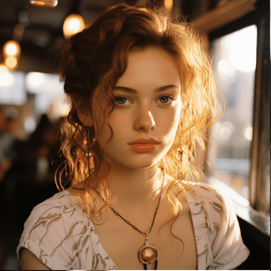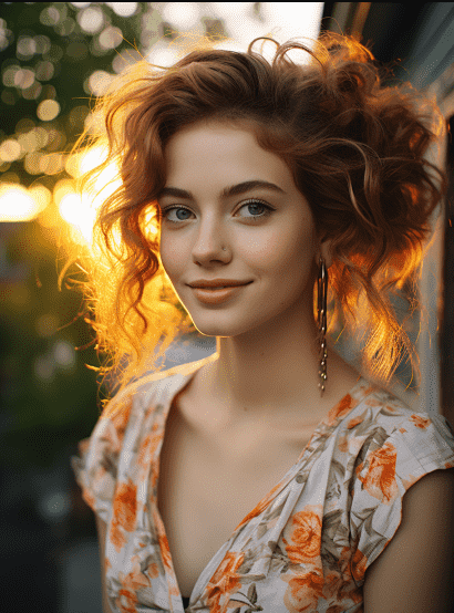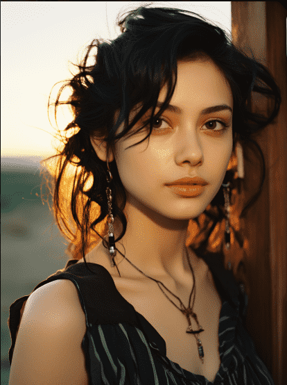 例子:realistic portrait photography of beautiful girl with {smile face, blue eyes, black hair}, pale skin, golden earrings, summer golden hour, kodak portra 800, 105 mm f1.8 –ar 3:4 –s 850 –v 5.2
