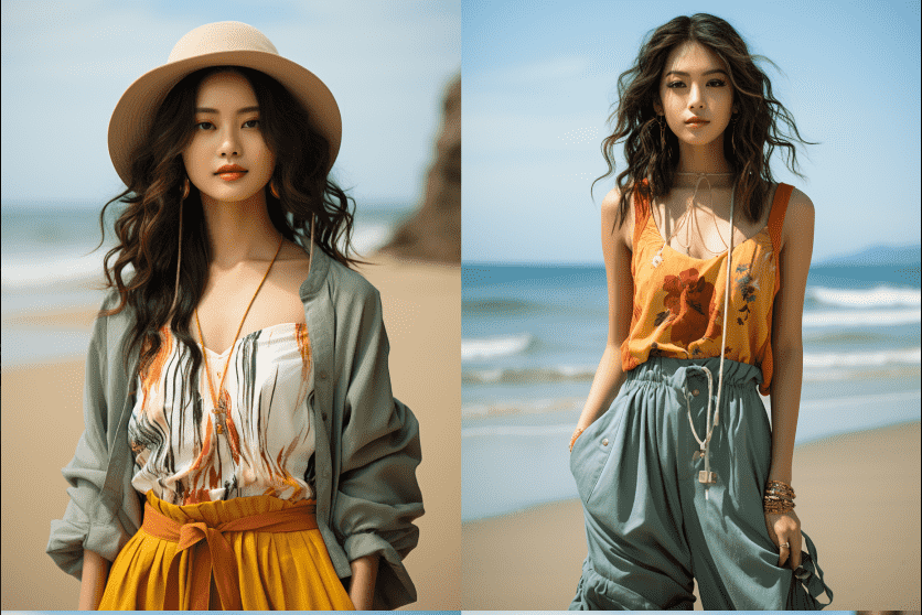 例子:realistic full body portrait photography of 20 years old Chinese lady in Beach style Clothes, full-body, kodak portra 800, 105 mm f1.8 –s 850 –v 5.2 –ar 3:4