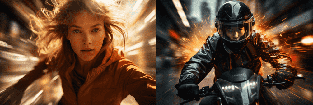 使用midjourney绘制动态模糊摄影图片时,可以使用下面的范式: