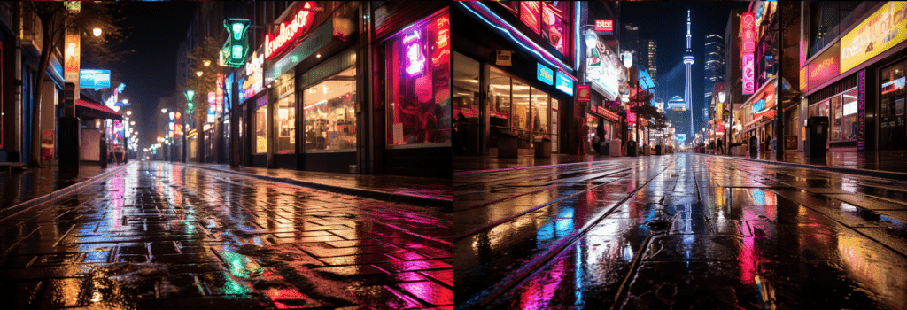 使用midjourney绘制夜景摄影图片时,可以使用下面的范式: