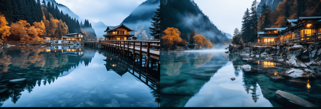 | Travel Photography | 旅行某地描述 | sony A7R IV | Eye-level,low | Golden hour, Blue hour | Wide, immersive |