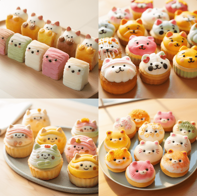 说到甜点,怎能少了日式的呢?Midjourney巧妙地将萌宠、鸡蛋烧和铜锣烧结合,创造出了一款不仅美味,还能俘获我们心的甜品。