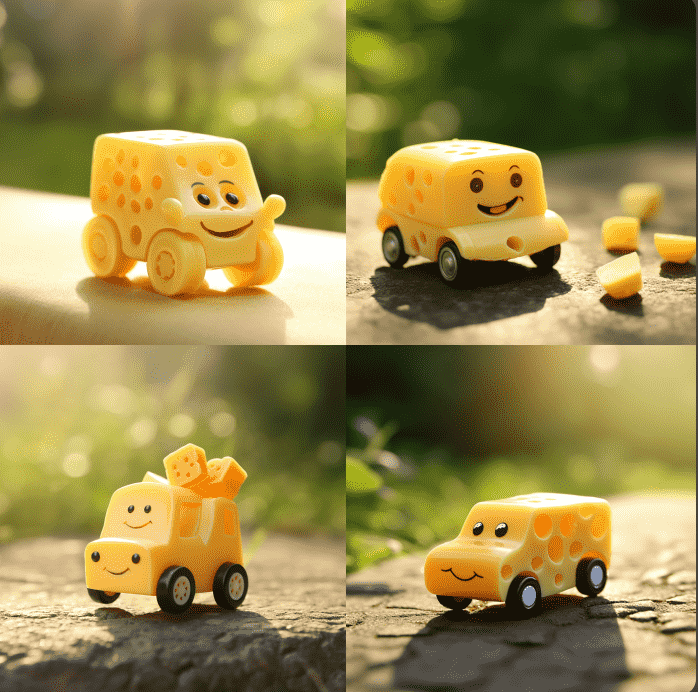 Midjourney为我们带来了一系列惊喜的奶酪设计。只需确定形状和风格,再加上适当的光影效果,就能创造出超乎预期的奶酪设计。让我们一起欣赏。
