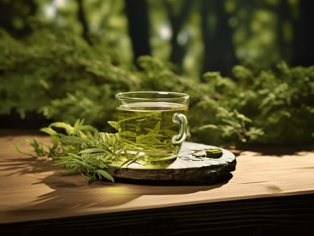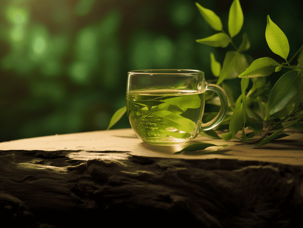 咒语:Commerical photography, a glass of green tea, sitting on a wood, a branch lying around, front view, soft lighting, clean light leige background, minimaand zen, close-up, 8k, Best quality, photorealistic. –ar 4:3 –v 5.2