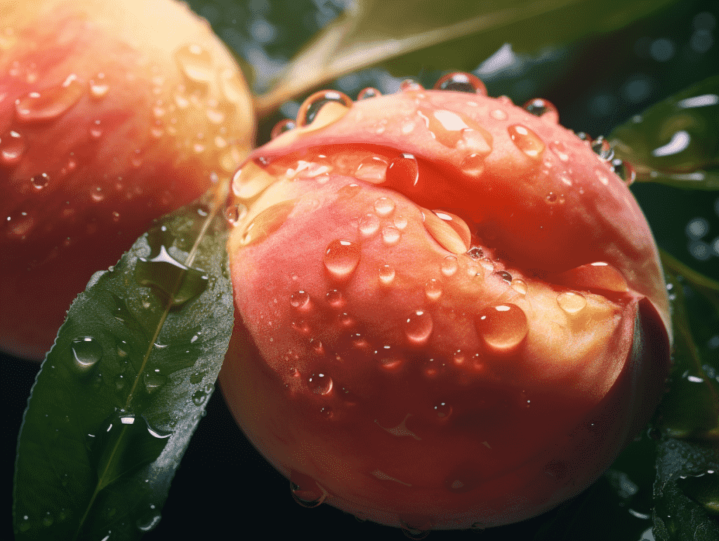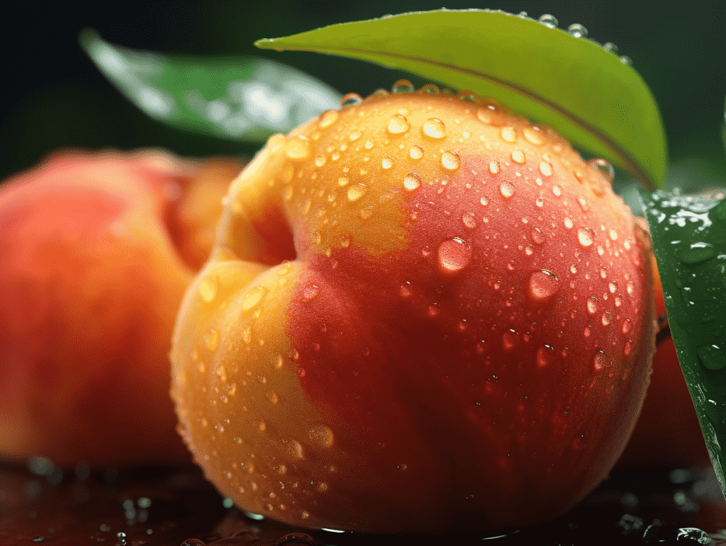 咒语: Food phorography, a peach, tropical background, water droplets, macoshot, stadio lighting,8k, Best quality, photorealistic. –ar 4:3 –v 5.2