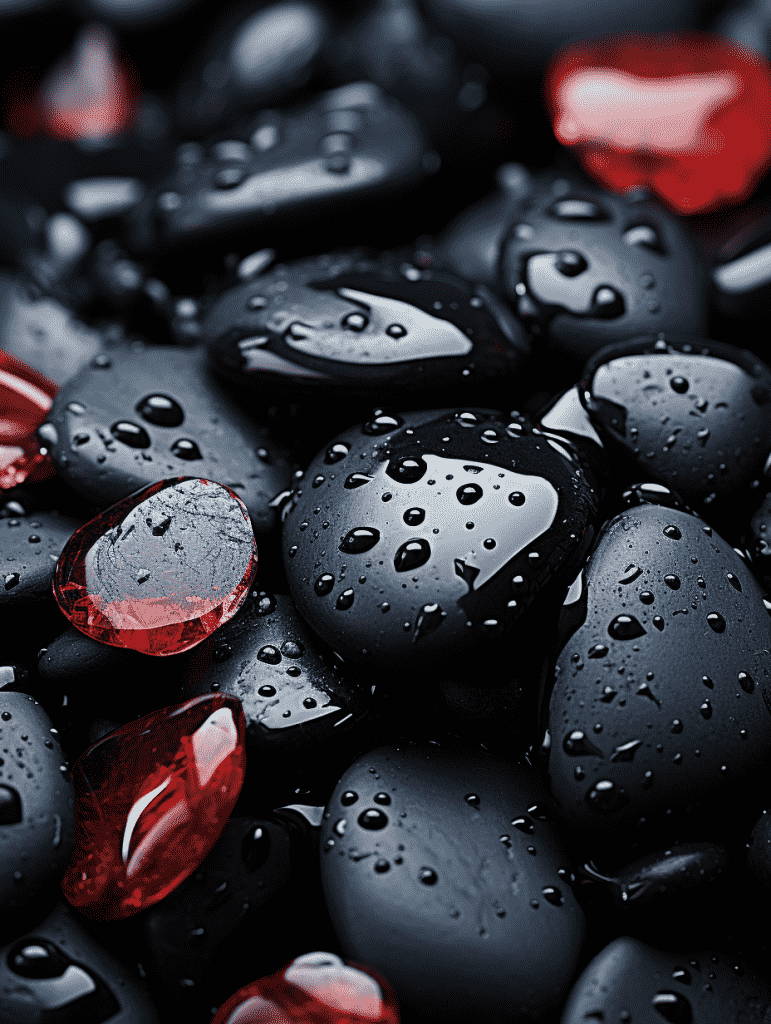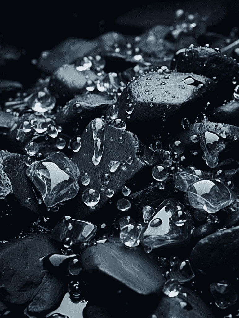 EN:Stone product shooting background with water droplets, for use during product shooting, rock, water droplets, premium sense, Tyndall effect lighting, studio quality, black background, highest image quality, –q 5 –s 550 –ar 3:4 –v 5.2