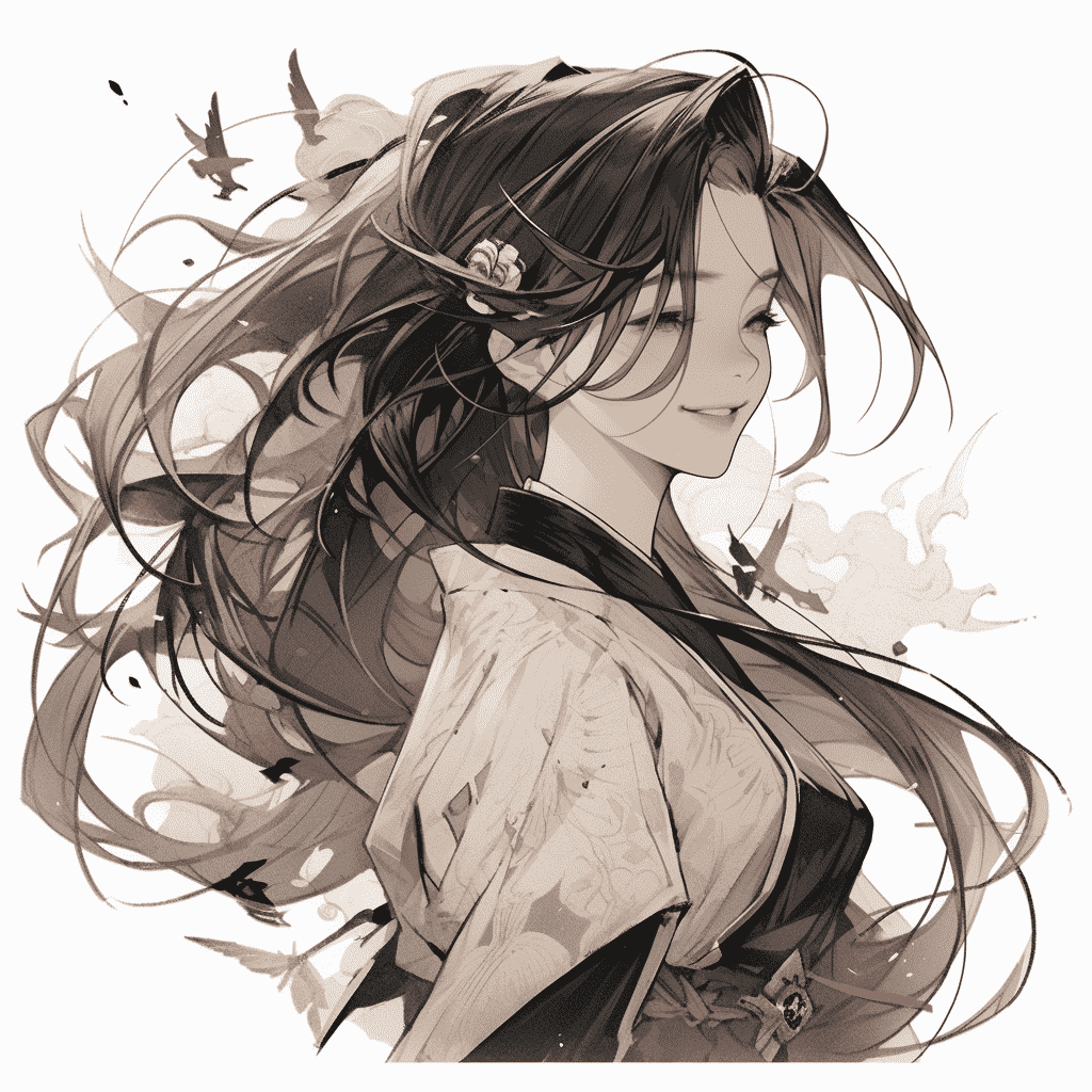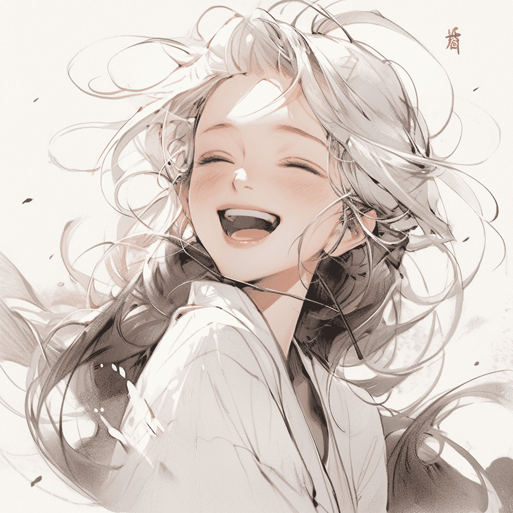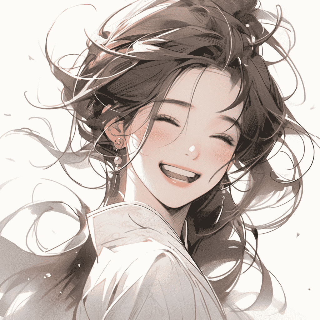 CN:一个非常美丽的中国女孩,女剑客,18岁,白色汉服,开心的大笑,齐白石,水墨风,二次元,中国风,微距,上半身,面对镜头,最佳质量,