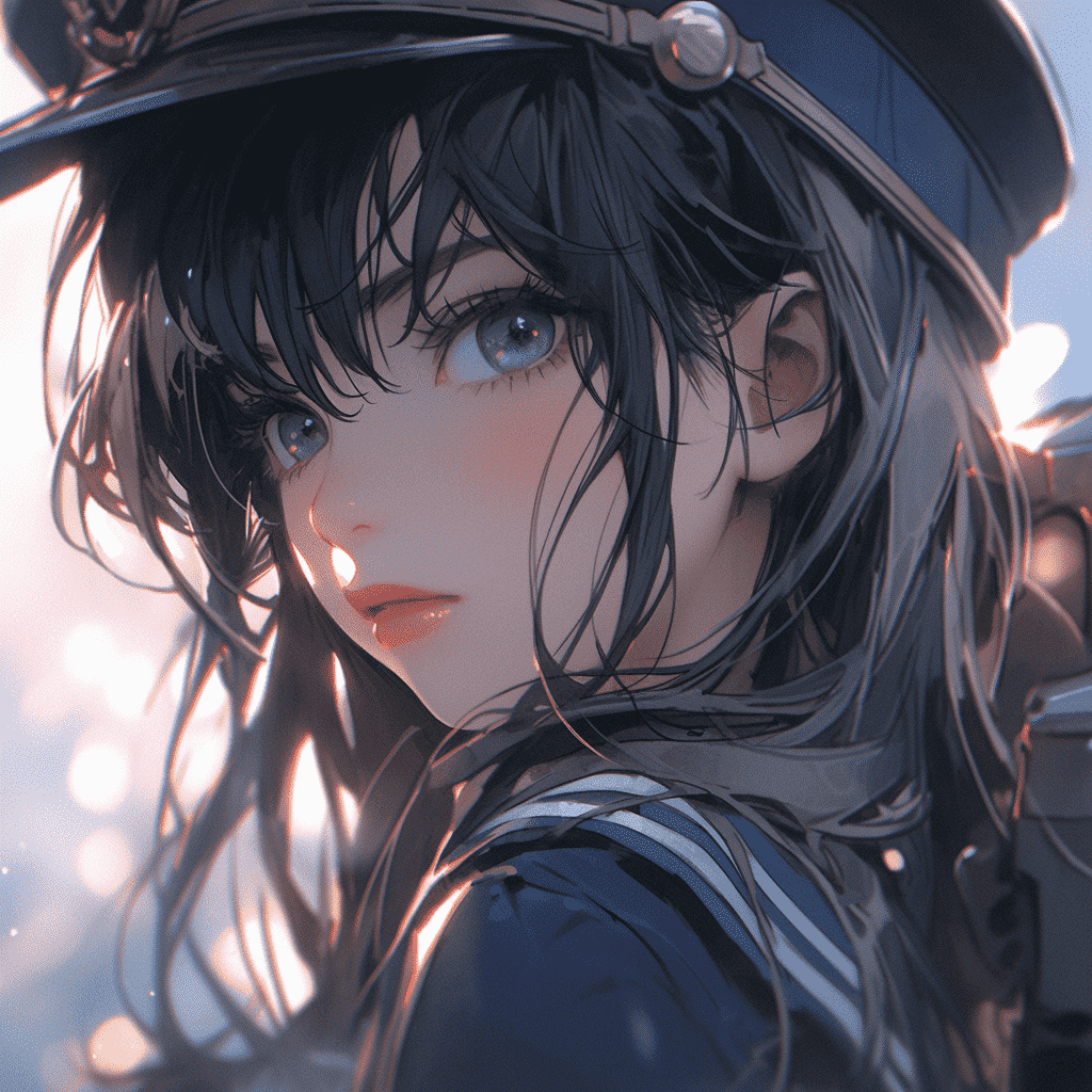 EN:A beautiful girl warrior, dressed in dark blue sailor suit, girl, sailor, very beautiful, holding gatling, anime style, second dimension, side face, high sense, upper body, contrast between light and dark, super clear, high detail, best quality, best picture quality, –ar 3:4 –q 5 –s 250 –niji 5