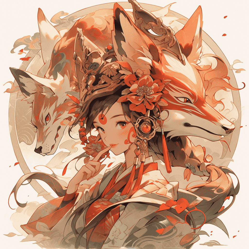 EN:Fox demon girl Hong Kong style illustration, retro beautiful girl, very beautiful, beige, yellow-green, dark red, three primary colors of Chinese illustration, Hanfu, hand holding chin, 1980s, Chinese style, Hong Kong style, bright texture, bright, meticulous painting, traditional Chinese style, minimalism, classicism, simple, smooth and smooth lines, simple white background, shiny, glossy, shiny and shiny, UHD, best image quality, best quality, –s 250 –ar 3:4 –niji 5