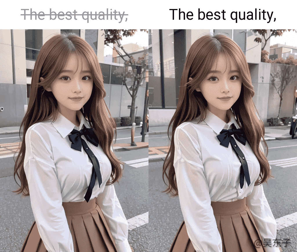 我们就可以看到加了“最高质量(the best quality)”的照片会更加清晰