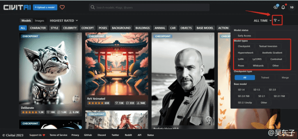 而大多数的模型都是在Civitai(C站)这个网站里面https://civitai.com/