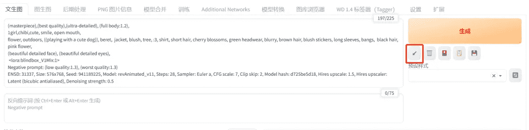 回到SD,粘贴到关键词的文本框,点击右边的按钮