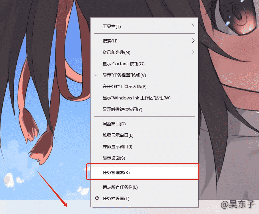 ①鼠标右击桌面底部任务栏——点击“任务管理器”