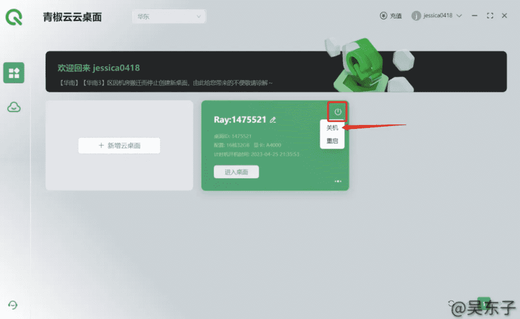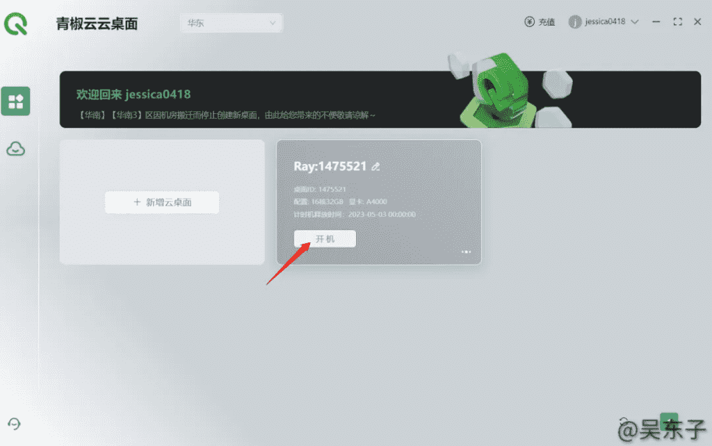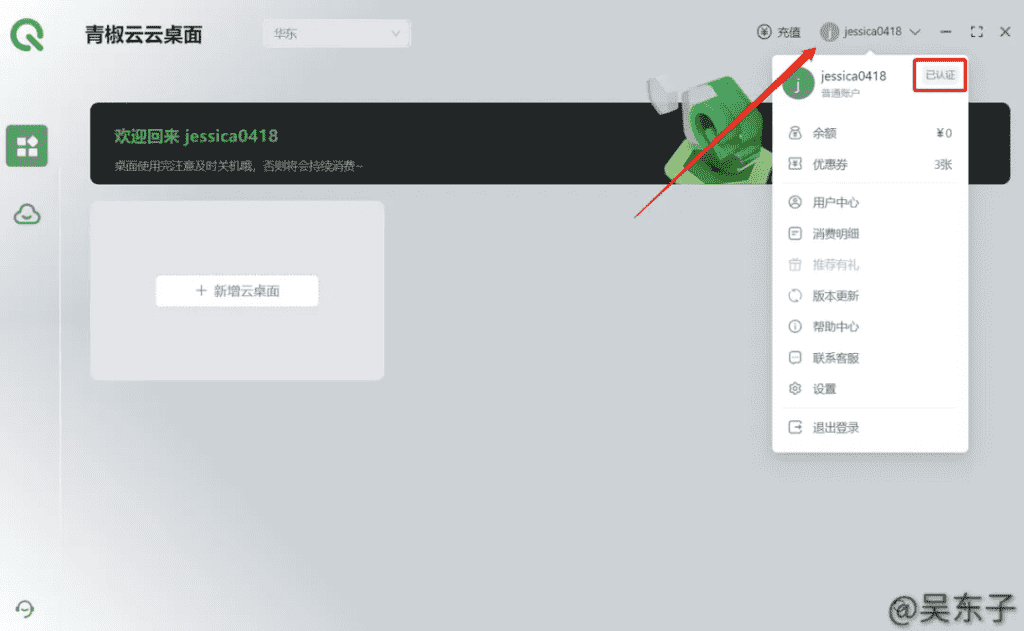 ④在进行实名认证后回到主界面,点击新增云桌面