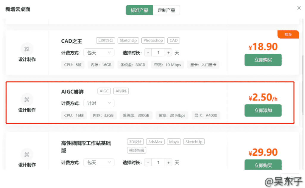 想玩Stable Diffusion可以选“AIGC尝鲜”,一般新注册的会有优惠券,可以免费试用