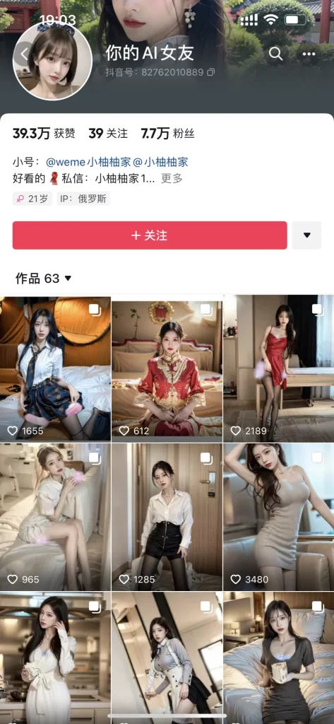 我们最常看到的就是这些真人AI美女的账号