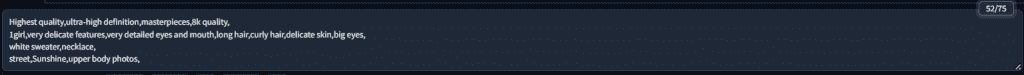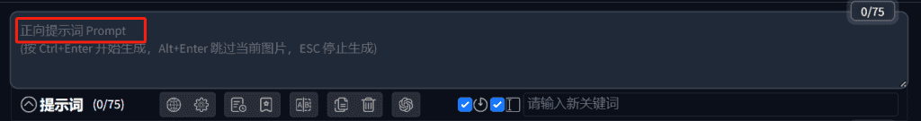 简而言之,选好大模型之后,我们就要考虑画面上要有什么东西,不要什么东西,有时候我们不太好确定不想要什么,这里也可以不填,或者填一些通用的关键词,后面还会提到。