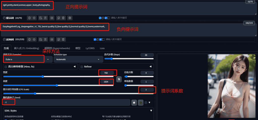 比如说我现在想要生成:一个漂亮的小姐姐站在大街上。