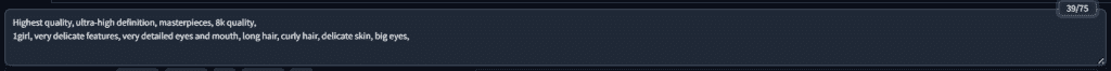 翻译成英文就是:1girl, very delicate features, very detailed eyes and mouth, long hair, curly hair, delicate skin, big eyes,